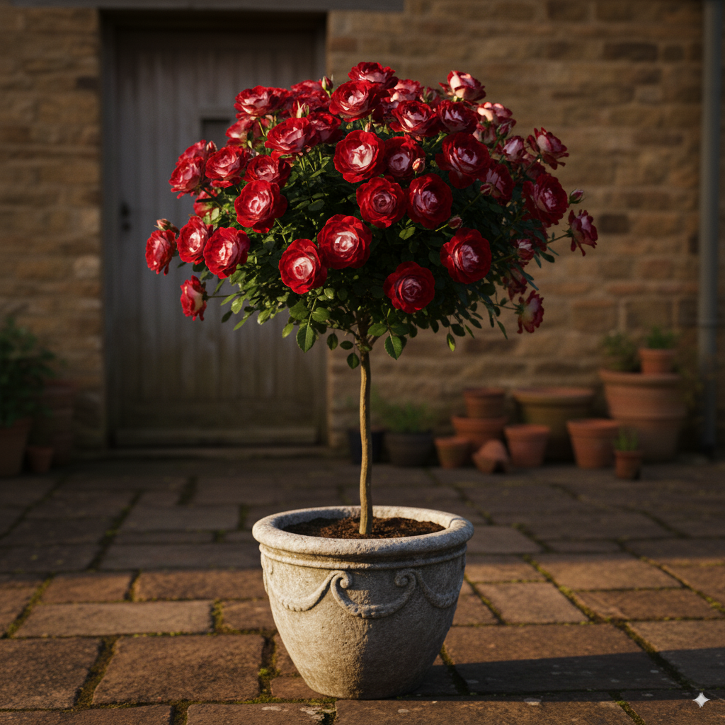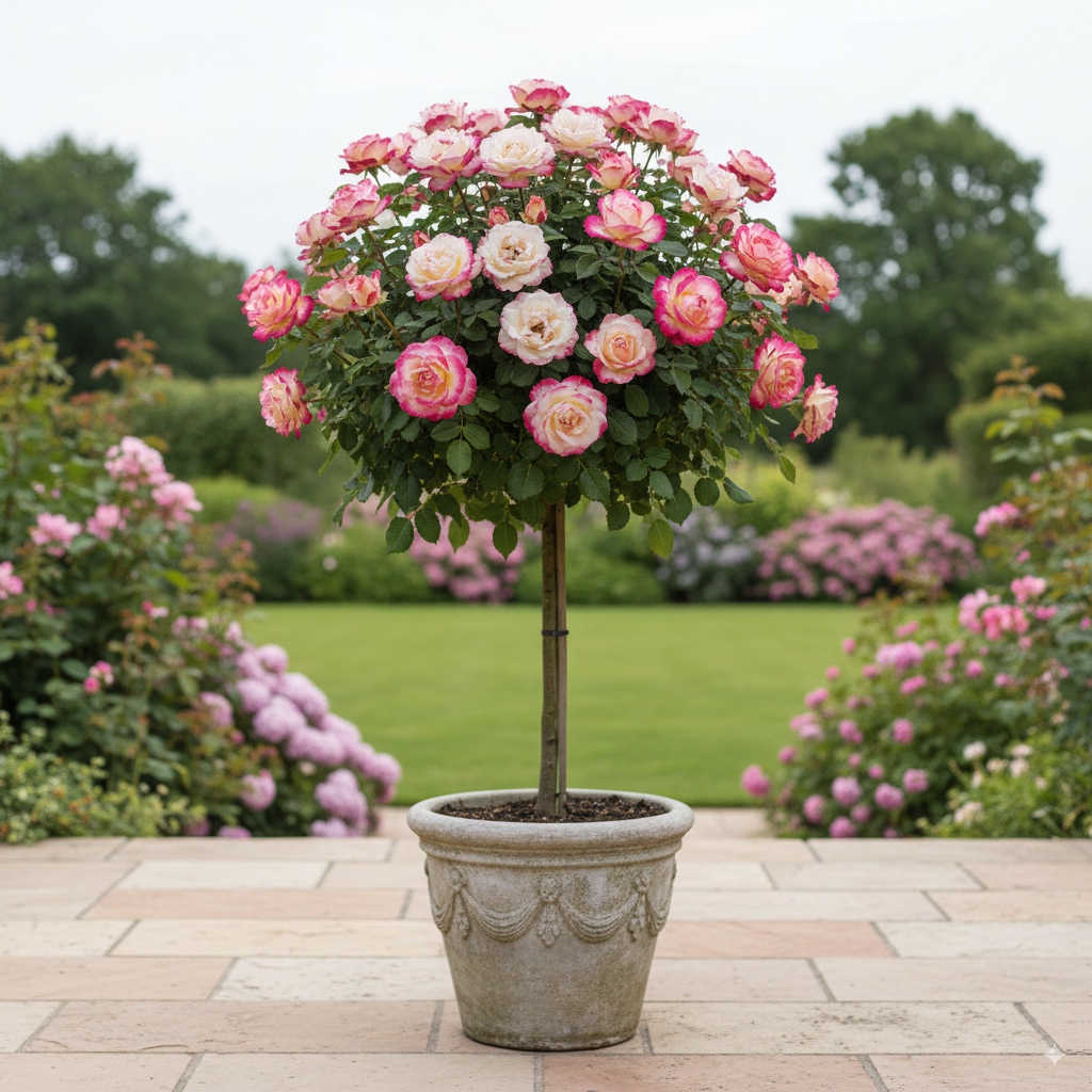 Anche coltivato in vaso, il rosaio ad alberello è ideale per decorare terrazze, balconi o ingressi, aggiungendo un tocco di classe e originalità ai vostri ambienti all’aperto.
