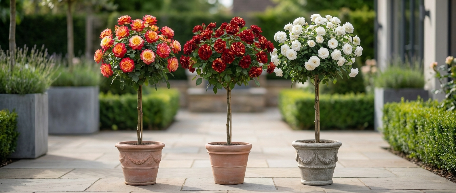 Aggiungi un tocco di prestigio alla tua casa con i nostri magnifici rosai ad alberello.