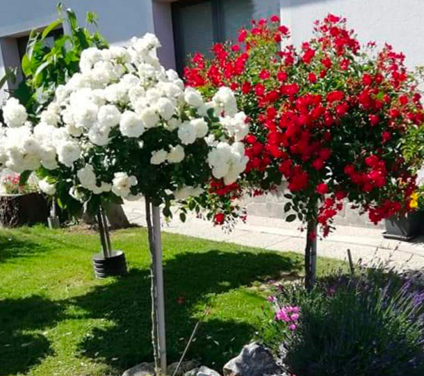 « Ho ordinato 4 rosai ad alberello per il giardino davanti alla mia casa di campagna. Crescono magnificamente e producono una quantità incredibile di fiori. Sono davvero spettacolari. Ne acquisterò altri due per la terrazza. Mia moglie è entusiasta: non aveva mai visto rose così belle. »